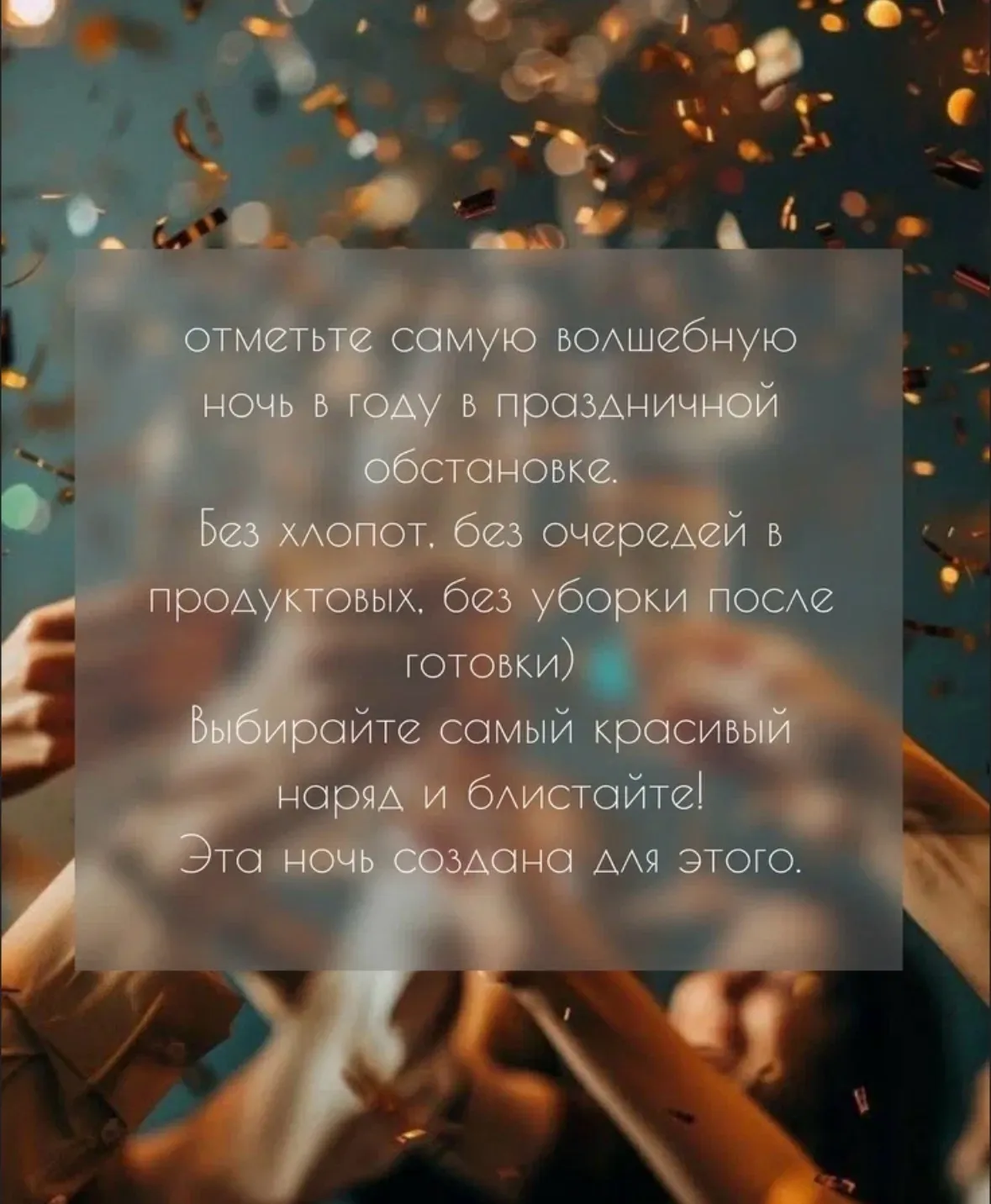 Для желающих Встреча Нового Года за дополнительную плату.